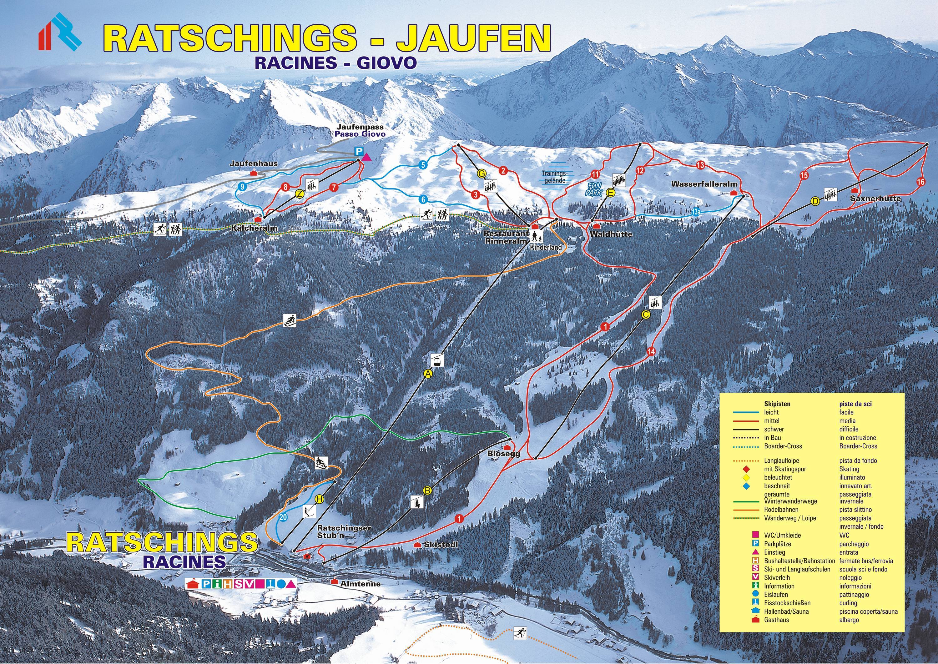 Towns/villages at the ski resort (distance from town center): Bichl (Colle) (0.2 km), Innerratschings (Racines di moreTowns/villages at the ski resort (distance from town center): Bichl (Colle) (0.2 km), Innerratschings (Racines di Dentro) (1 km), Ratschings (Racines) (7 km), Stange (Stanghe) (7 km), Mareit (Mareta) (9 km), Telfes (Telves) (14 km), Ridnaun (Ridanna) (14 km) Towns/villages at the ski resort more(distance from town center): Bichl (Colle) (0.2 km), Innerratschings (Racines di Dentro) (1 km), Ratschings (Racines) (7 km), Stange (Stanghe) (7 km), Mareit (Mareta) (9 km), Telfes (Telves) (14 km), Ridnaun (Ridanna) (14 km)