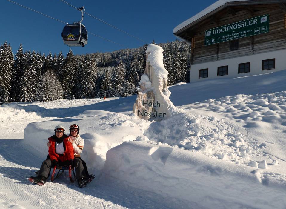 Typical Salzburg delicacies such as Kasnocken attract winter sports enthusiasts. Hut fun with traditional Austrian live music, opportunities for dancing, and entertaining performances are part of the daily routine. After the hut fun, the descent by toboggan is especially enjoyable. Toboggans can be rented.