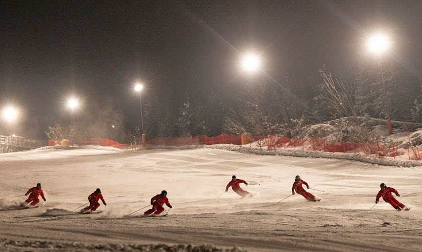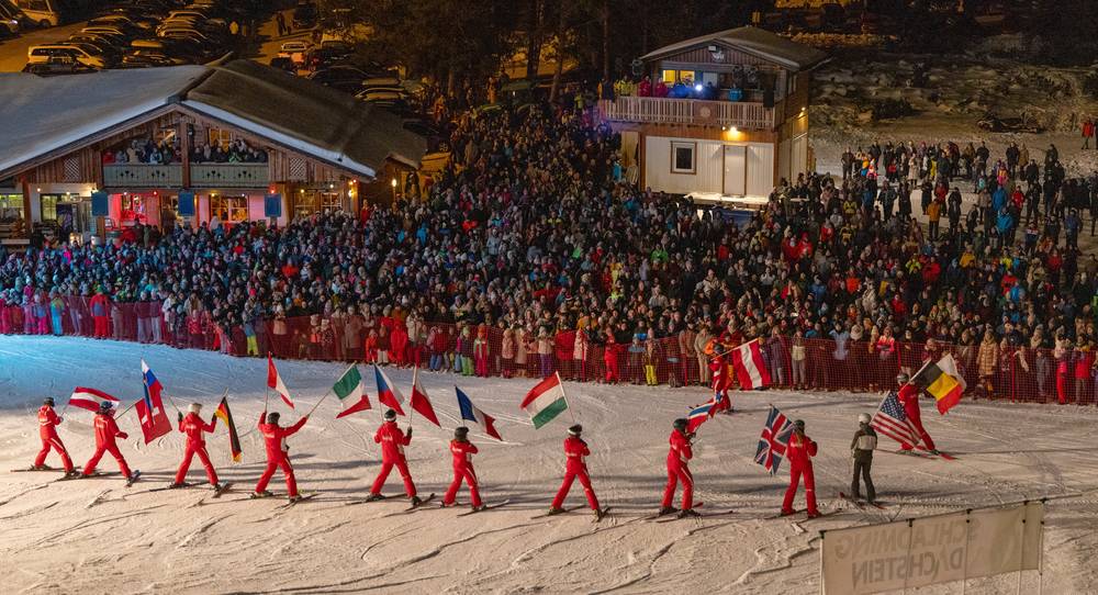 Ramsau am Dachstein welcomes its guests with a festive snow welcome event. 60 to 100 performers, mostly ski instructors from the Ramsau ski schools, put on a fantastic show and enchant guests with acrobatic performances on the Rittisberg Nordhang.