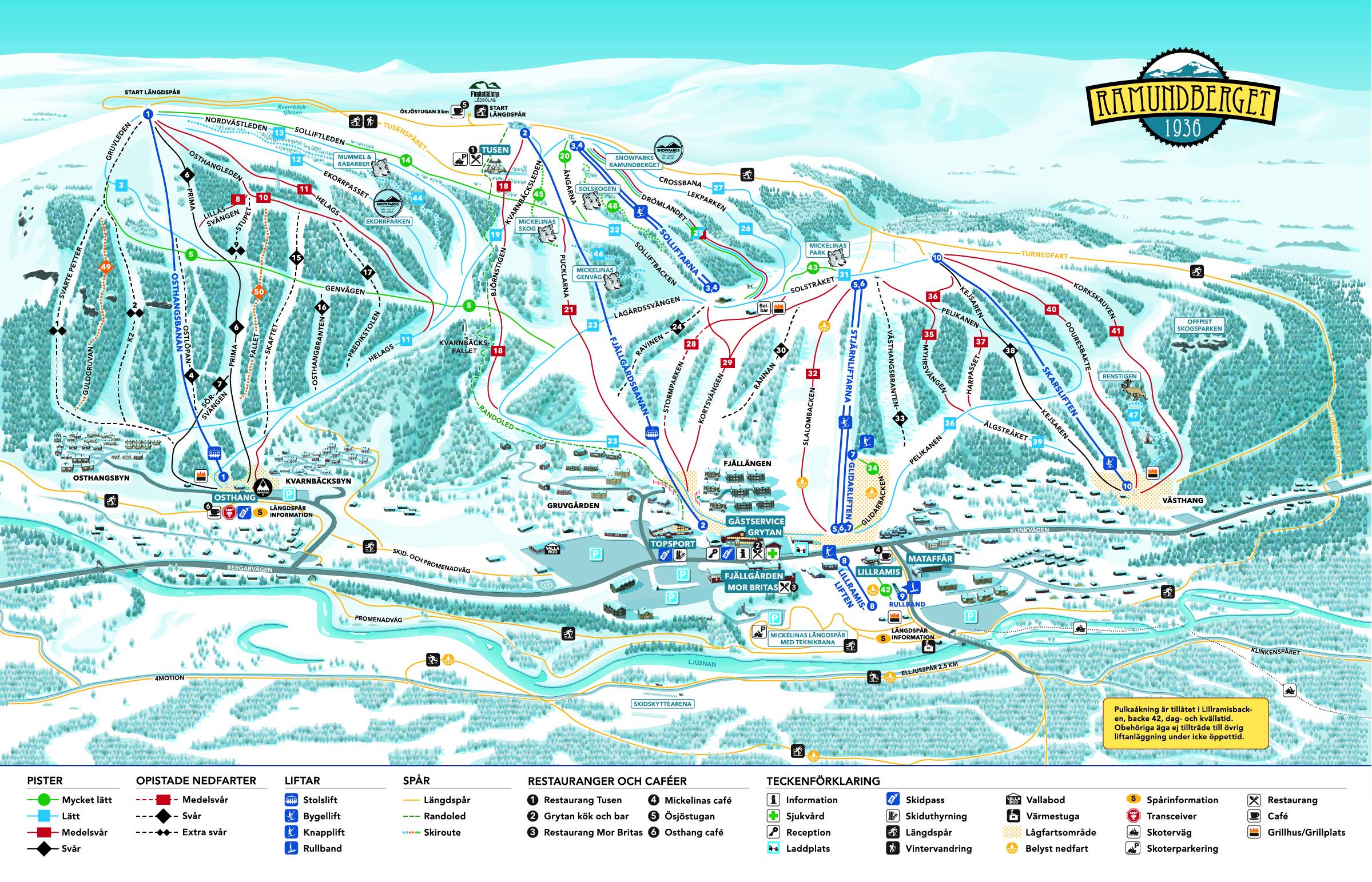 Ramundberget (0.1 km), Bruksvallarna (8 km) Towns/villages at the ski resort