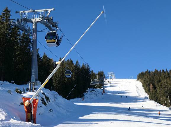 The Rangger Köpfl ski area in Oberperfuss features a high-performance snowmaking system with snow lances and mobile snow cannons. This ensures reliable season dates. The ski route down to the valley is occasionally open, so the descent to the valley is usually made by gondola.