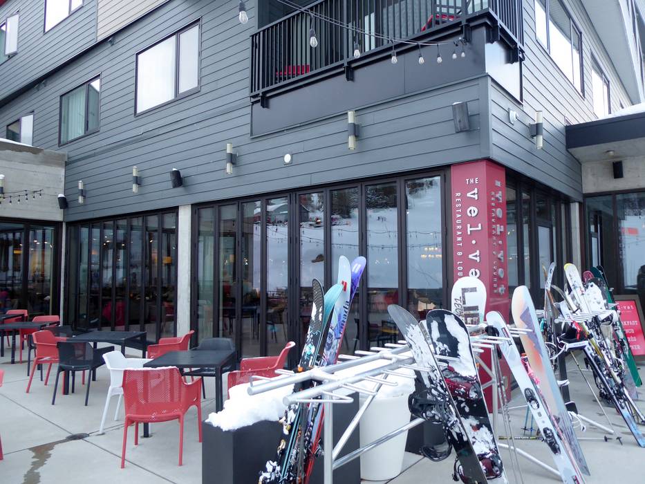 On the upper floor of the Day Lodge at Red Mountain Resort at 1,185 m
