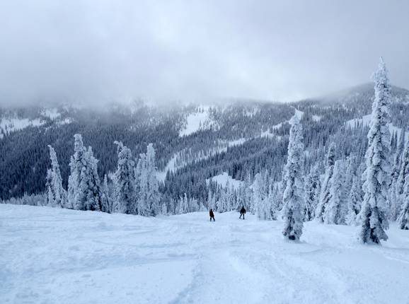 Red Mountain Resort is a paradise for advanced skiers and freeriders. The ski area is known for its excellent snow quality and receives very high amounts of fresh snowfall. Numerous challenges await within the ski area boundaries: steep groomed and ungroomed slopes, mogul runs, deep powder slopes, descents through trees and forests (tree skiing), steep bowls, and cliffs. The deep powder slopes within the ski area boundaries are controlled, and you can practically ski the entire resort.