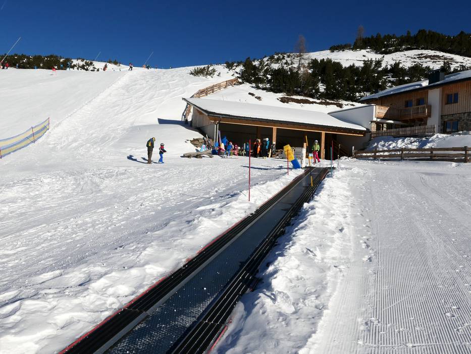 The children's area of the Sarntal ski school is located in the middle of the ski resort at the Pfnatschalm. Children reach the practice area by gondola and an exciting snowmobile ride. With a magic carpet and comic figures, the ski kindergarten is ideal for making first experiences on skis.