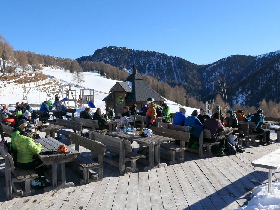 The cozy ski hut with a large sun terrace is one of the most beautiful ski huts in South Tyrol. It is located directly on the ski slope and toboggan run.