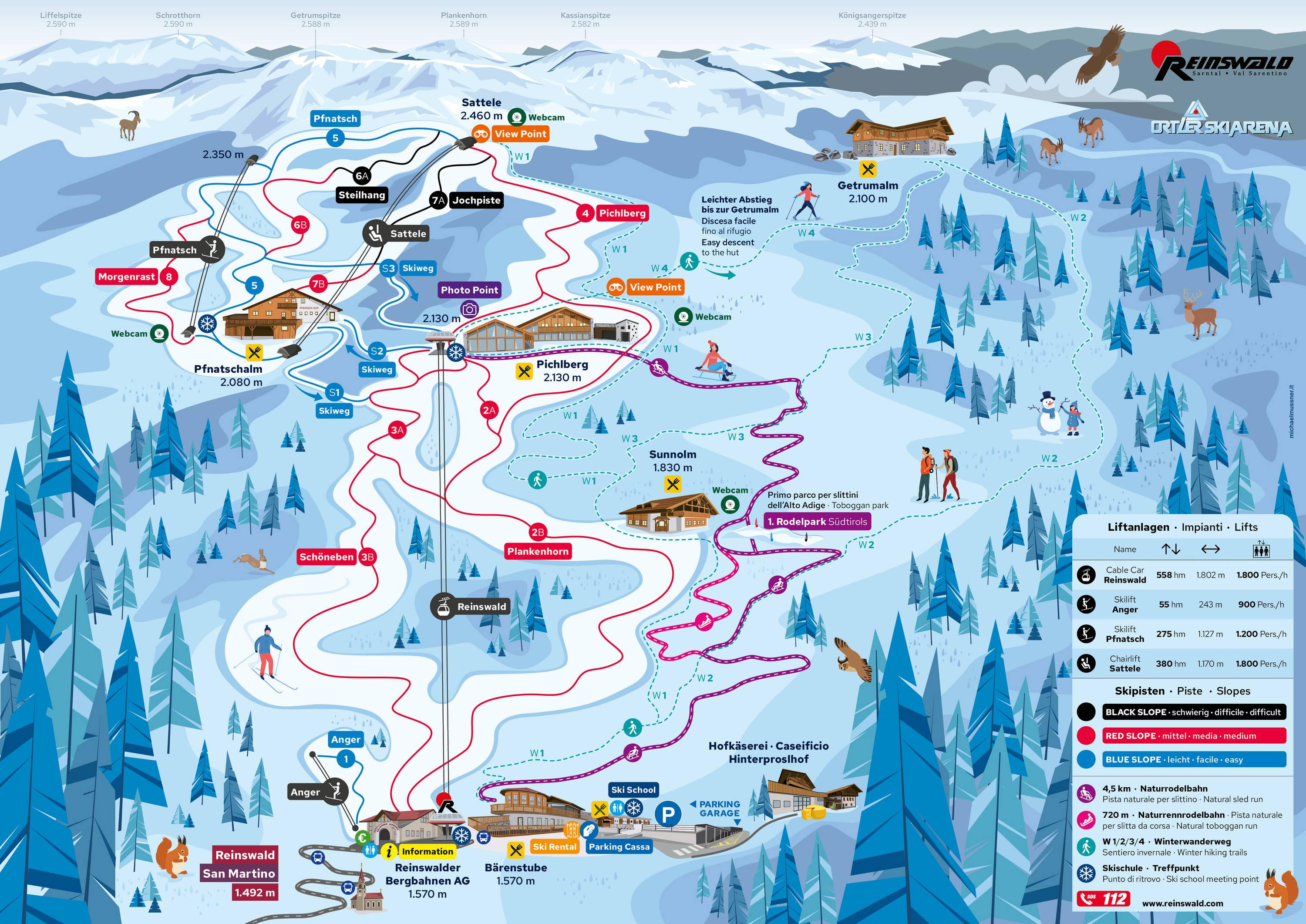 Orientation (Trail map, information boards, sign-postings) and safety in the ski resort Reinswald (San Martino in Sarentino)