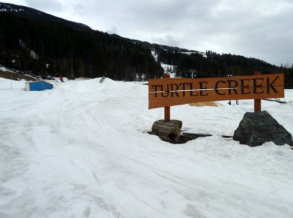There is a snow park at Revelstoke Mountain Resort. At the valley station, there are also some kickers and rails set up next to the Turtle Creek tubing area.