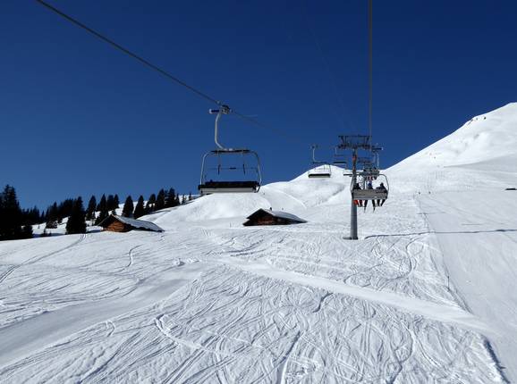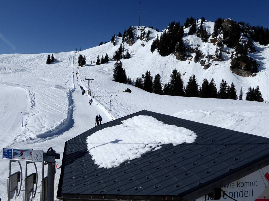 From Zweisimmen and Saanenmöser, gondola lifts take you up into the ski area. From Schönried, a fast chairlift heads up the mountain, while from St. Stephan, a slow double chairlift leads into the ski area. Around Parwengesattel, Saanerslochgrat, Hornberg, Horneggli, and Oeschseite, you are transported almost exclusively by fast chairlifts, some with weather protection covers. Drag lifts and practice lifts complete the range of facilities in the Rinderberg/Saanerslochgrat/Horneggli ski area.