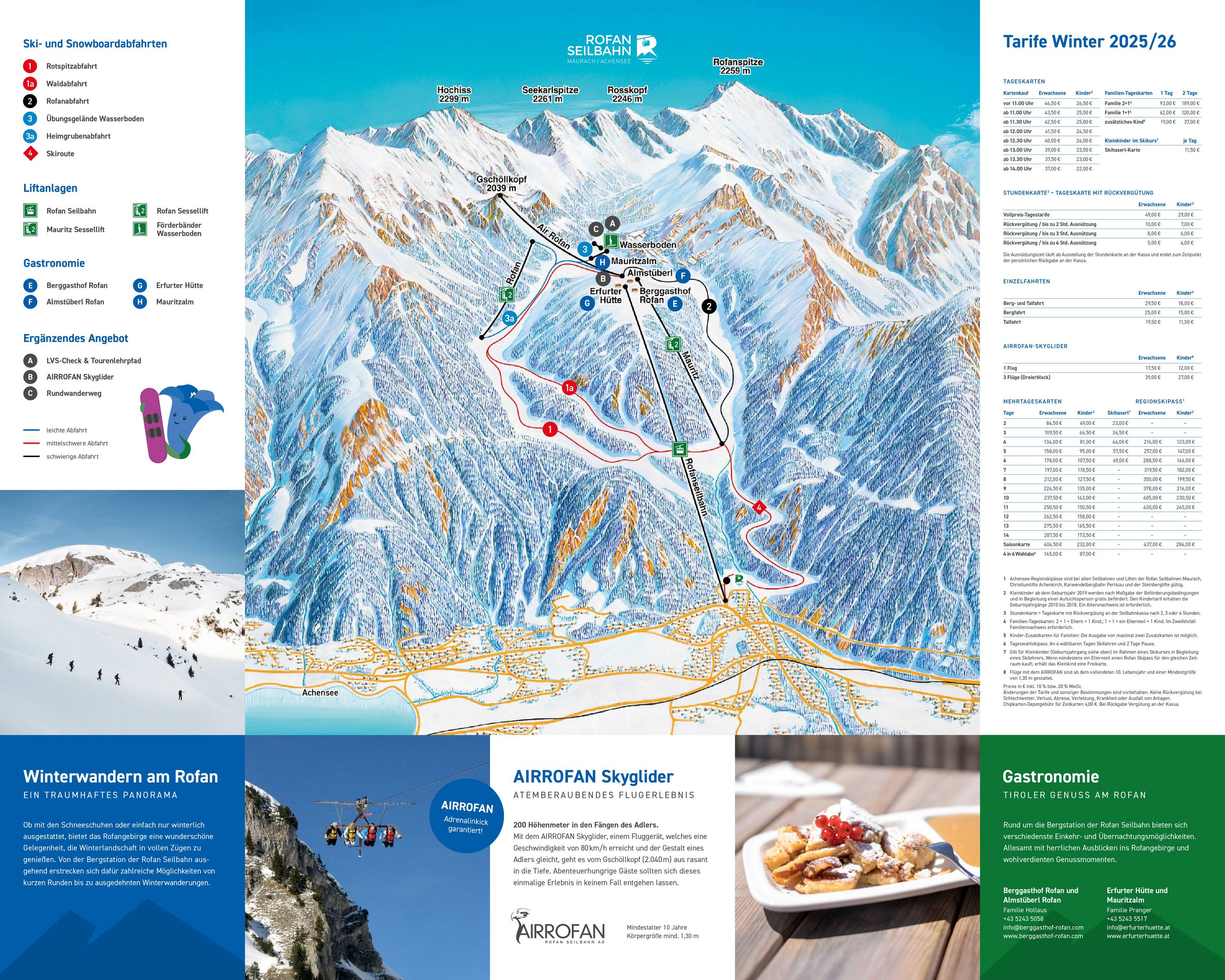 At the valley station of the Rofan cable car, there is a very comprehensive information board. The piste map to take with you could show the ski area in a bit more detail.