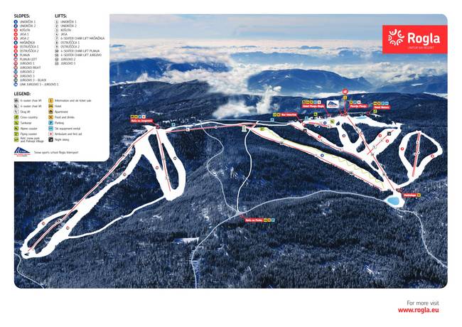 Rogla (0.1 km), Oplotnica (12 km), Zreče (16 km) Towns/villages at the ski resort