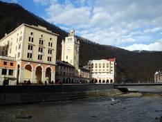 Rosa Khutor is the largest of the ski resorts in Krasnaya Polyana. With the awarding of the XXII Winter Olympics to the Black Sea metropolis of Sochi, several new ski resorts for skiing and snowboarding were developed in and around the then 3,000-inhabitant village of Krasnaya Polyana within just a