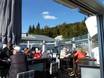 The umbrella bar is centrally located at the valley station between the ticket office, lift, ski rental, and parking garage – everyone passes by here. It's the perfect place to end your ski day.