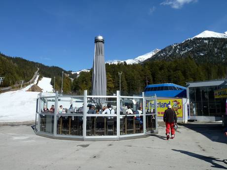 The Seefeld/Rosshütte ski area has a more relaxed atmosphere. Visitors mainly enjoy the spacious sun terraces for laid-back après-ski. There are also umbrella bars at Murmelebau and at the valley station.