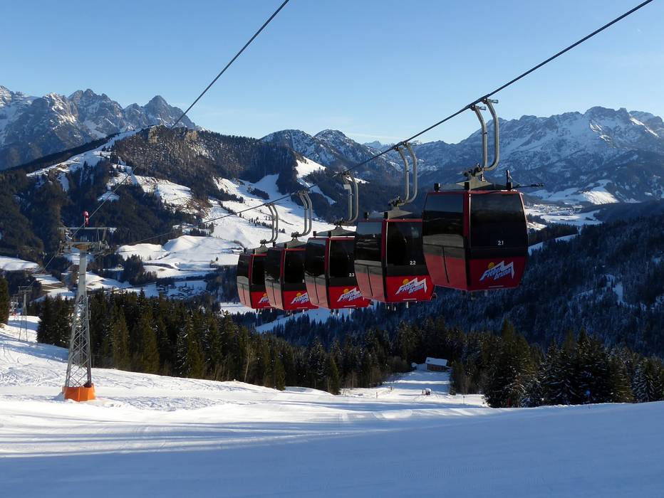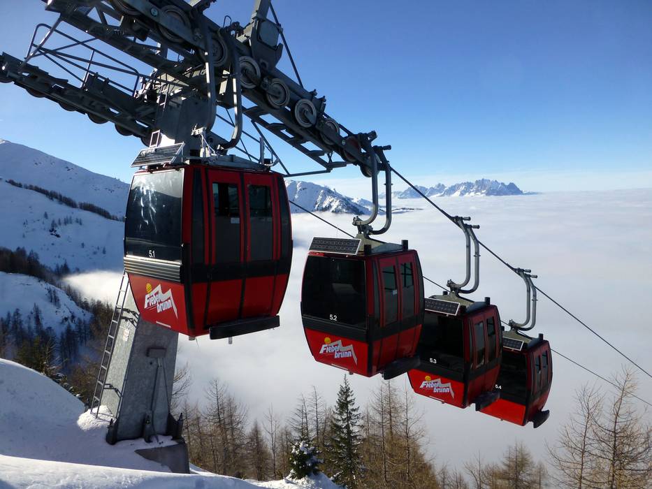 Since the 2015/16 season, the 10-seater gondola lift E5+E6 TirolS has connected Fieberbrunn with Saalbach Hinterglemm Leogang. The ski area now extends across Tyrol and the Salzburger Land. The lifts and cable cars are state-of-the-art and uniformly labeled with a great design. Most of the time, you ride up the mountain on fast and heated chairlifts and gondolas. The majority of the chairlifts are also equipped with weather protection covers. It doesn't get any better than this. For beginners, drag lifts and platter lifts are available throughout the ski area.