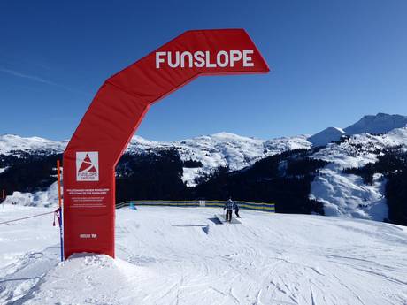 The Funslope Zwölfer is located below the Zwölferkogel in Hinterglemm. Along the family run, the Funslope offers banked turns, jumps, and a giant snow snail. Ideal for the whole family.