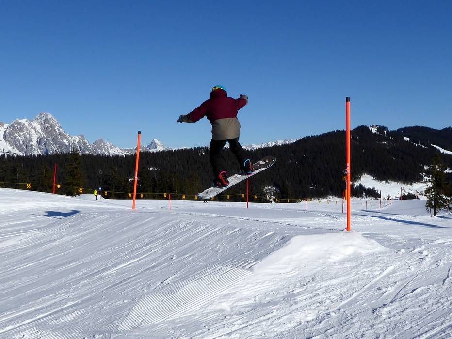 The Learn-to-Ride Park is located on the Bernkogel in Saalbach and is specially designed for beginners. Here, you can practice your first jumps and shred on small boxes.