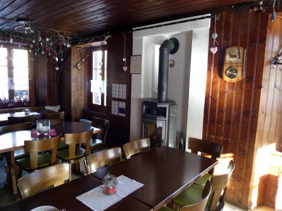 The glacier grotto, also known as "Gröttli," is the insider tip for delicious Valais specialties and a cozy atmosphere. From the sun terrace, you have a magnificent view of the surrounding mountains and the Saas-Fee ski area. On cold days, a fireplace in the rustic lounge provides warmth.