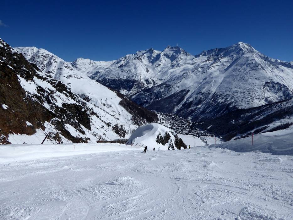 All valley runs lead to Saas-Fee to the ski school meeting point.