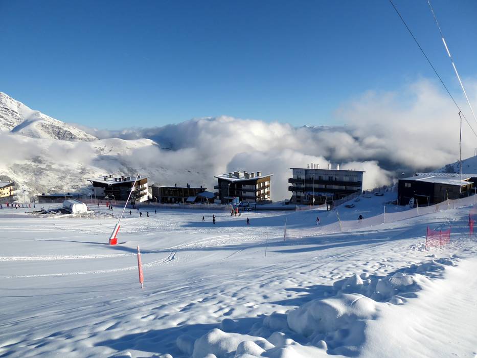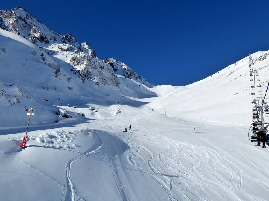 The Saint-Lary Soulan ski area stretches from the village of the same name up to around 2,500 meters. From the spa town in the valley, gondola lifts transport guests to Pla d’Adet and into the main winter sports area. The lifts provide access to around 700 hectares of terrain for skiing and