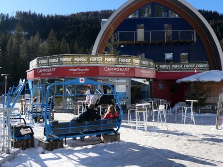 The Tognola Campo Base is the après-ski venue in San Martino di Castrozza with a bar and great music. Here, you can enjoy après-ski every day after skiing or snowboarding.