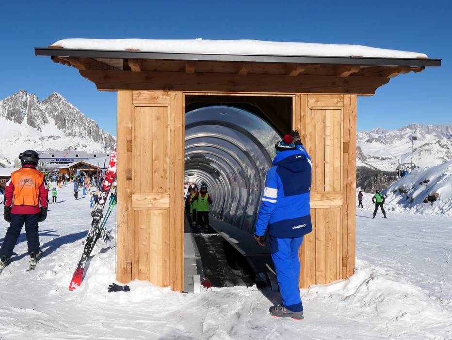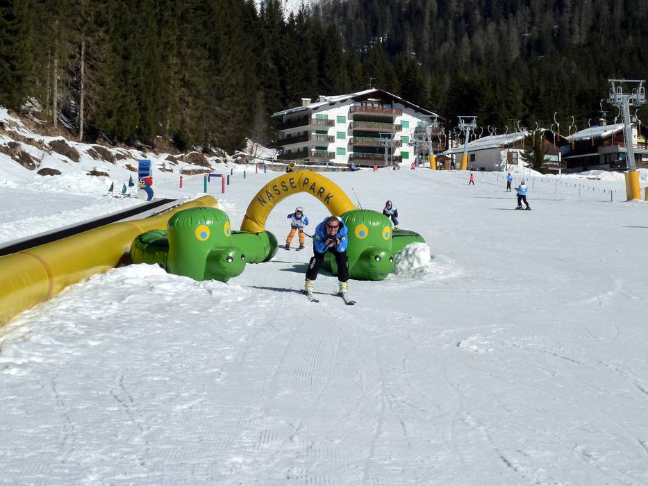 The Nasse Park is located right in the village of San Martino di Castrozza. Here, children will find conveyor belts and a playground. Right next to it, the two Prà Nasse button lifts provide access to very easy slopes. Additionally, there is a tubing run with a conveyor belt.