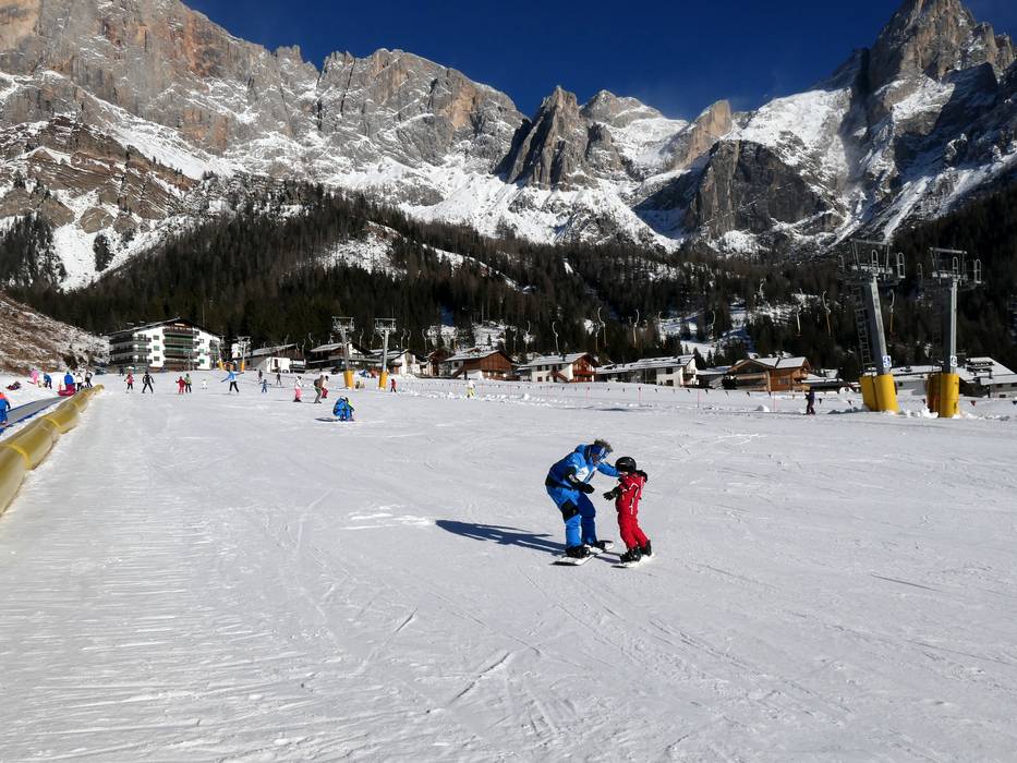 San Martino di Castrozza is family- and child-friendly. There are two children's areas with daycare facilities and perfectly groomed slopes for the whole family. The Cigolera chairlift is equipped with child safety features. In addition, special family offers such as Dolomiti Ski Smart (a package deal for hotel and ski pass) are available. This makes San Martino di Castrozza attractive for the whole family.