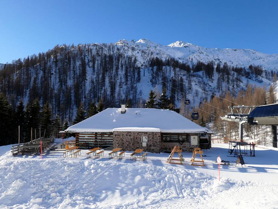The modernized hut has preserved its old style on the outside. On the sun terrace and inside, you can enjoy regional specialties here. The homemade panini are highly recommended.