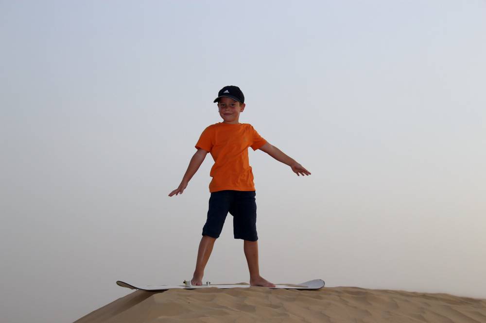 Even the little ones can go sandboarding The vastness of the desert