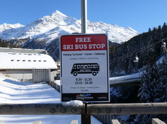 - The ski resorts around Bormio are connected by a ski bus service (free for ski pass holders). Thus, a ski bus runs from Bormio to Santa Caterina. From the accommodations in Santa Caterina, a ski bus also runs to the valley station.