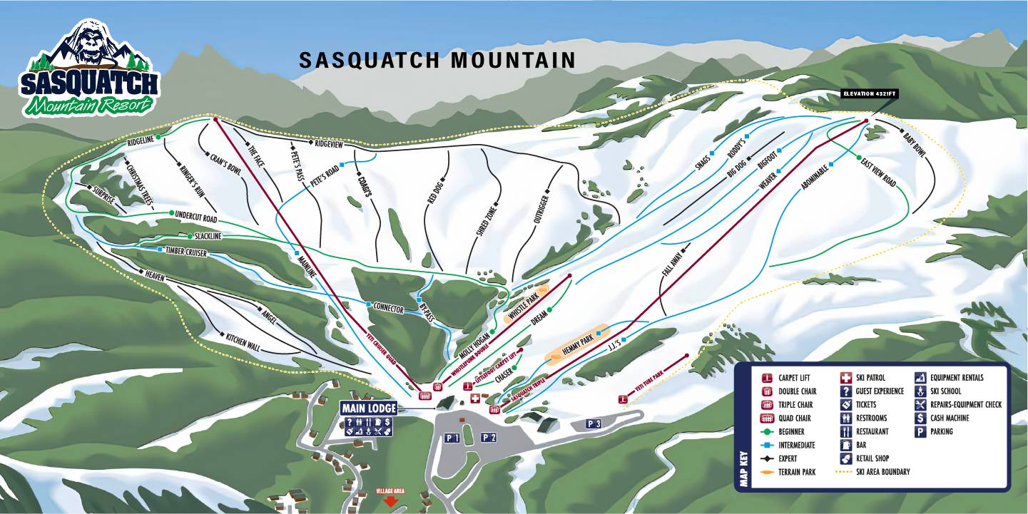 Trail map Sasquatch Mountain Season 2025/2026