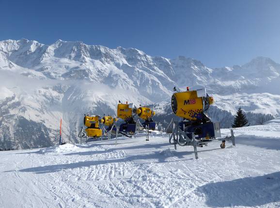 Almost all slopes are located above 1600 m and the ski area extends up to nearly 3000 m. Due to its altitude and the snowmaking on the most important slopes, the ski area can be considered very snow-sure. The runs down to Mürren (1650 m) are practically open all winter. The snow-covered valley run to Lauterbrunnen (796 m) is not always open.