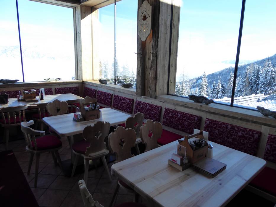 The sun terrace of the Hochwurzenhütte offers a breathtaking panorama. However, the traditional dining room also allows you to enjoy the hearty local cuisine in less favorable weather.