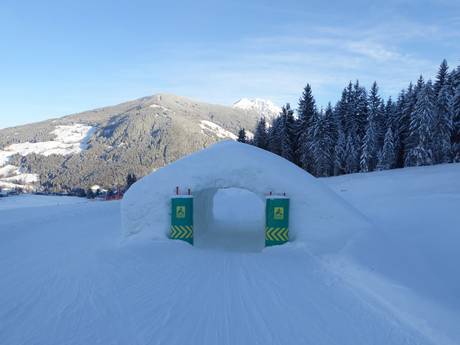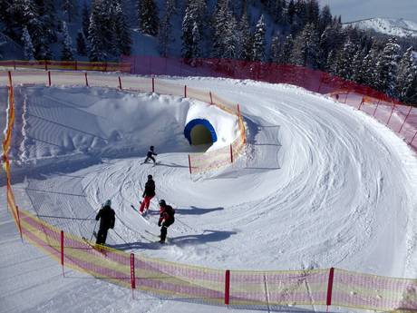 Three different lines (Beginner, Medium, and Pro Kicker Line) await the enthusiasts at the sun-drenched Weitmoos lifts. Numerous kickers with tables over 10 meters high are absolutely impressive. A wide variety of rails, tubes, boxes, and mushrooms complete the offer. In the chill area, you can watch the freestylers' stunts in a relaxed atmosphere.