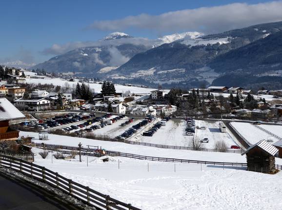 The ski resort in the lower Stubai Valley is easily accessible from the Brenner motorway. It is only a few minutes' drive from Innsbruck. Coming from Innsbruck, a partial toll must be paid on the Brenner motorway up to the Stubaital exit. The main parking lot of the Schlick 2000 ski resort is about 300 meters from the valley station of the Kreuzjochbahn and is located slightly below it. A free shuttle bus takes guests to the valley station of the gondola lift. Alternatively, a paid underground parking garage is available in the basement of the Kreuzjochbahn valley station.