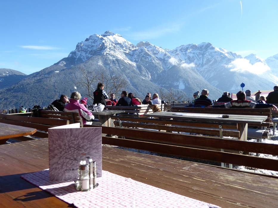 The Froneben Alm, run by Lukas Rasinger, is a true family business. Here, everything is freshly prepared, and most of the products come from their own farm. While the Tyrolean inn culture is clearly cherished here, the menu is quite varied: from excellently crafted burger variations to hearty soups like the homemade beef broth with Kaspressknödel and Tyrolean Speckknödel. Inside, the Froneben Alm is very cozy, while outside a wonderful sun terrace with panoramic views awaits. On night tobogganing evenings, it is also open in the evening.
