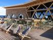 At the valley stations, cozy bars are available to round off your ski day. In the ski area itself, you can also stop by umbrella bars or end the day relaxing in sun loungers.