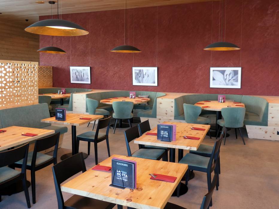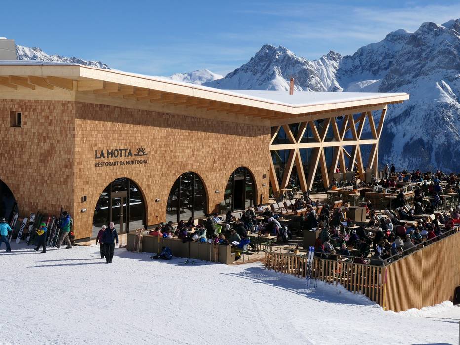 Grand opening for the 2024/2025 season: The new La Motta offers unique restaurant experiences and features impressive architecture. Gastronomically, La Motta is divided into different areas. The restaurant La Finezza offers table service and serves regional and modern cuisine with grill specialties. Meals are accompanied by exquisite wines. Prontezza is a large self-service restaurant with a family corner and spacious, bright rooms. The Bar & Café area offers freshly brewed coffee, aperitifs, and fresh drinks. A very large sun terrace is ideal for relaxing and enjoying all areas. Here, no wishes are left unfulfilled.