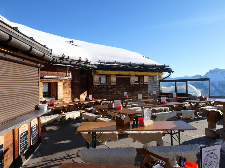 The rustic hut is ideal for a stop on the dream slope. In cold weather, the cozy and rustic lounge with a fireplace is inviting. When the sun is shining, you can relax on the sun terrace and enjoy the panoramic view.