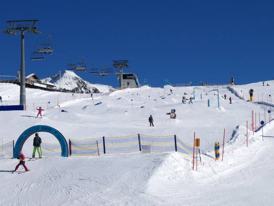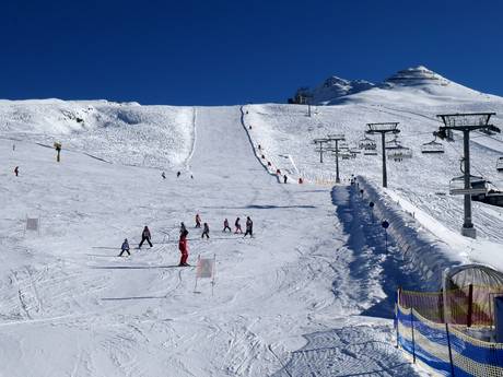 The large children's and beginners' area with two conveyor belts and a platter lift is located at the mountain station of the Medrigjochbahn. The gentle slope is ideal for beginners. The See Ski School looks after the children in the practice area and sometimes even sets up a race.