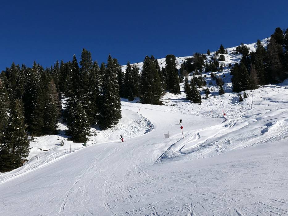 The slope leads uninterrupted from the mountain station of the Furglerblickbahn down to the valley station in See.