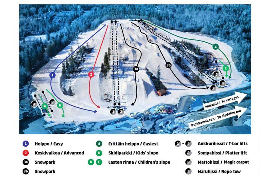 Espoo (22 km), Helsinki (31 km) Towns/villages at the ski resort