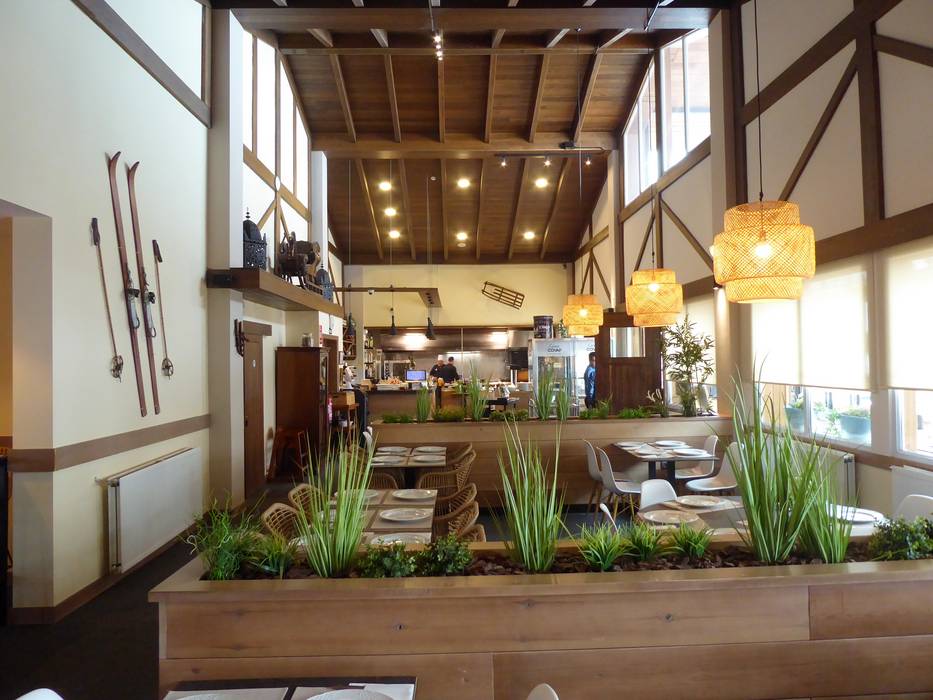 The Swiss Chalet offers traditional Swiss cuisine with plenty of cheese. Raclette and cheese fondue are served. A good wine list completes the offer. In good weather, the large sun terrace is an inviting spot.