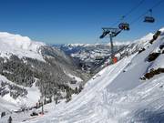 Slopes at the 10-seater gondola lift Valisera Slopes at the 8-seater chairlift Seebliga Wide slopes at the Rinderhütte View from Versettla to Valisera View from Grasjoch towards the Nova ski area… Slopes at the Panoramabahn at Hochjoch Slope 41 and 42 at the Madrisella The ski tunnel at Hochjoch Valley run 60 to Gaschurn Valisera Bahn II - 10pers. Gondola lift with seat… Valisera Bahn I - 10pers. Gondola lift with seat… Silvretta Bahn - 8pers. High speed chairlift… Jöchle Bahn - 6pers. High speed chairlift… Sonnen Bahn (Gampabing) - 8pers. High speed… Nova Bahn - 6pers. High speed chairlift… Rinderhütte Bahn - 6pers. High speed chairlift… Modern snowmaking at the Valiserabahn Freshly groomed slope at the Jöchle Bahn Signposting on the slopes Electronic displays at the main points in the ski… Well-maintained Silvretta Park Montafon Closure of wildlife protection areas Guests are assisted when boarding Gastronomy tip Valisera Hüsli Gastronomy tip Nova Stoba Gastronomy tip Bella Nova Gastronomy tip Kapellrestaurant Gastronomy tip Alte Talstation Gastronomy tip Markthalle Mountain hut tip Brunellawirt Mountain hut tip Wormser Hütte Après-ski tip Sonnenbar Kapellrestaurant Après-ski tip Alte Talstation Après-ski tip Grasjoch Schirmbar Après-ski tip Brunellawirt Après-ski tip Edelweiss Alm Après-ski tip Limo Montafon Revier Hotel directly at the valley station of… Accommodation around the valley station in… Tip for children - Noviland run by the Skischule… Tip for children - Hochjoch/Zamang… Tip for children - Children's area at… Beginner slope with conveyor belt at Kapell Beginner slope with rope lift at Kapell BlackScorpions - Fancy a little cold sweat? Photo Silvretta Montafon