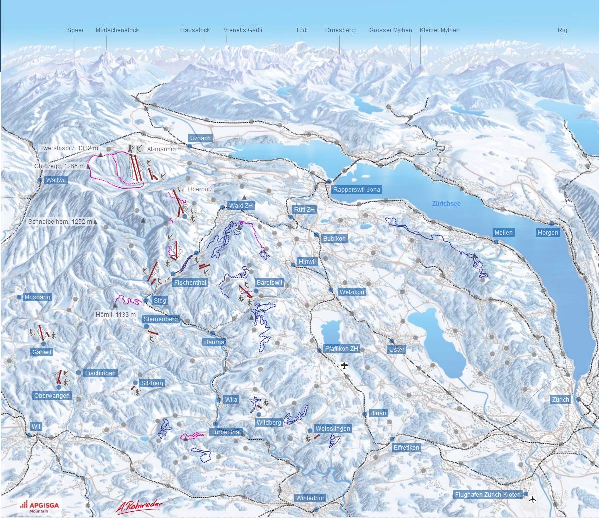Sitzberg (0.2 km), Schmidrüti (1.9 km), Dussnang (5 km), Fischingen (6 km) Towns/villages at the ski resort