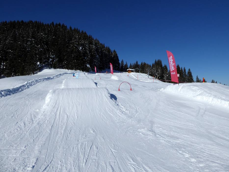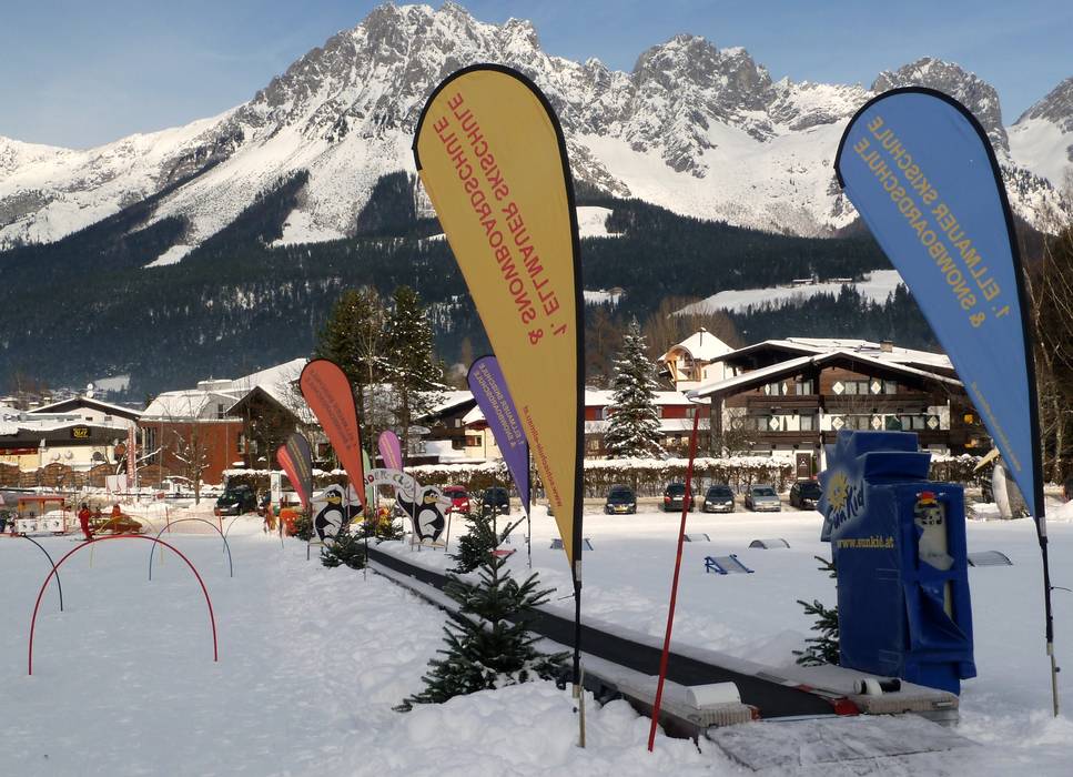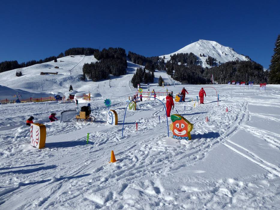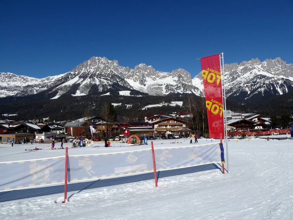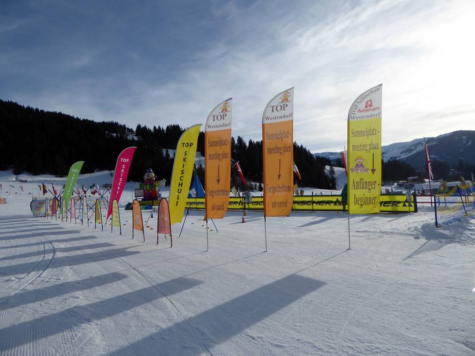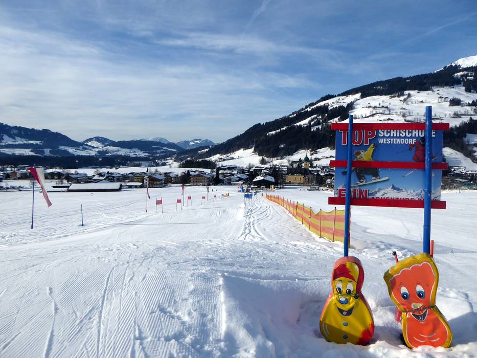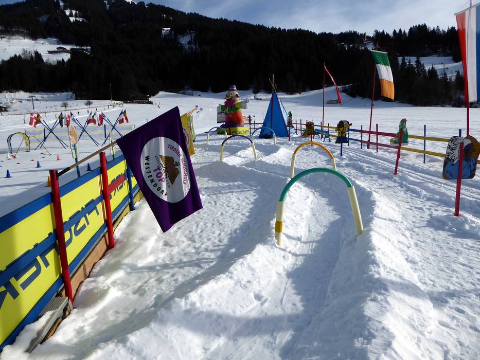 The area of the TOP Ski School offers, among other things, the following facilities: magic carpet, children's ski train, bobsleigh track, obstacle course, wave track, and Indian tent at the clown. The area is located at the practice meadow in Westendorf.