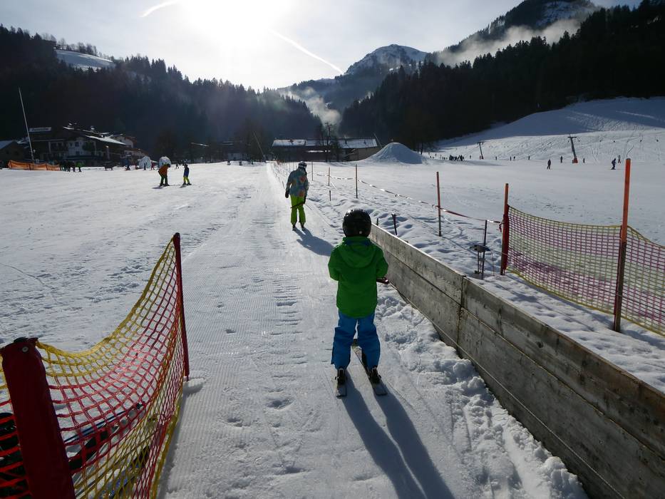 The Alpin Hopfgarten Ski School operates a large children's area at the valley station in Hopfgarten. The beginner's area with magic carpet is located right next to it.