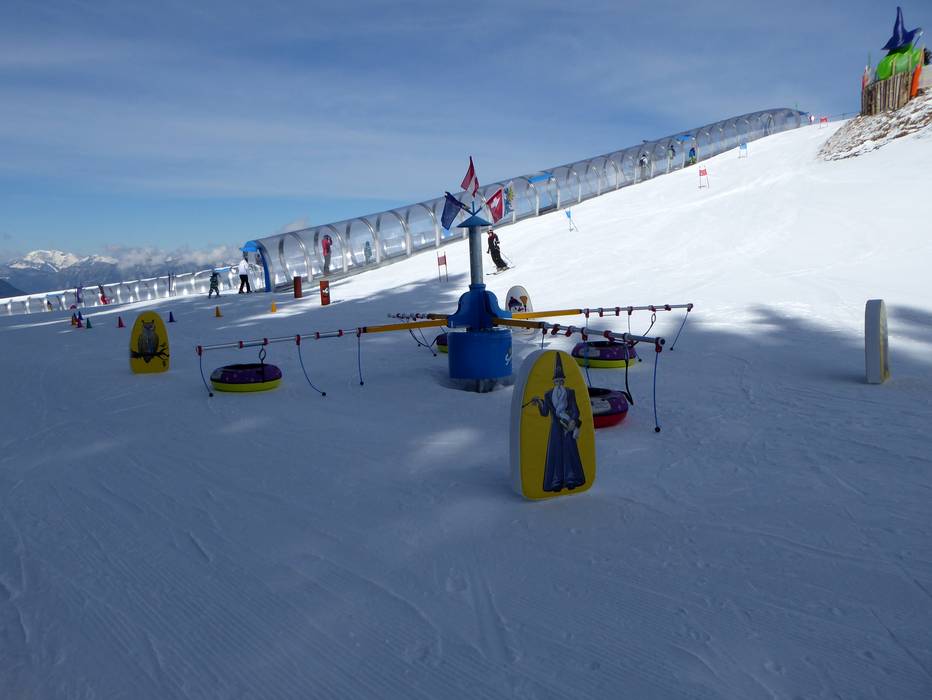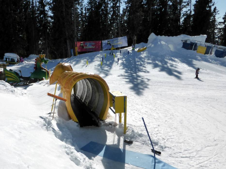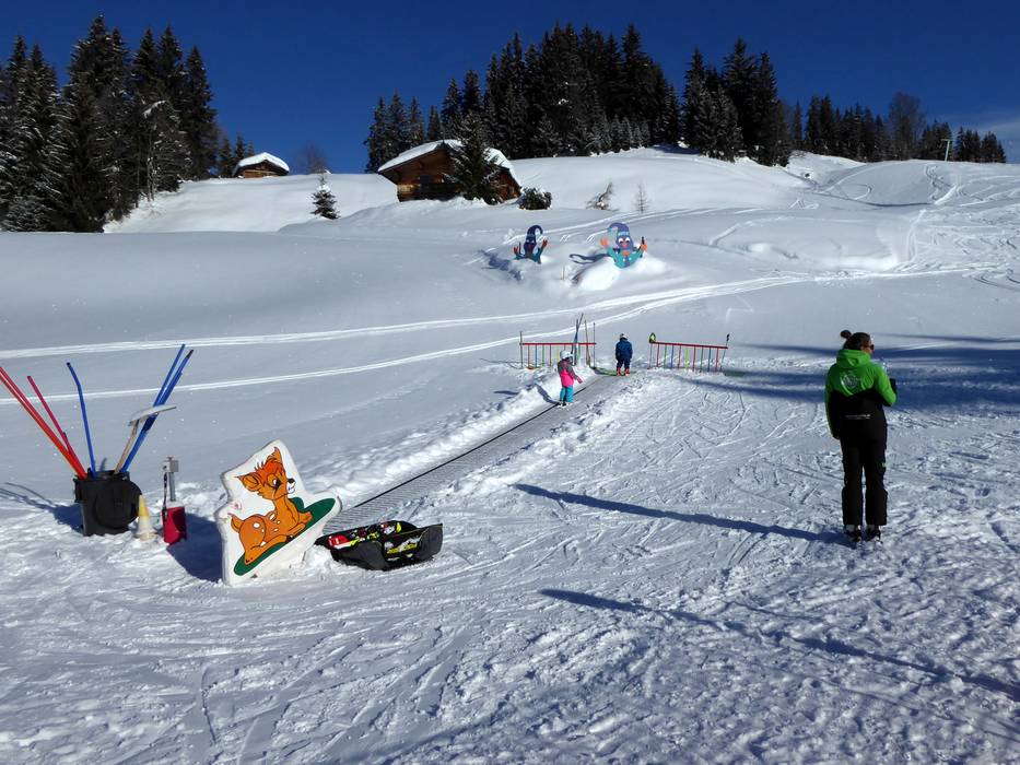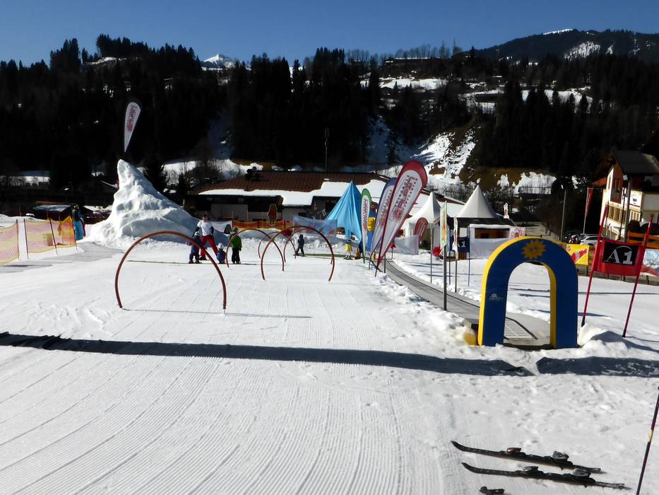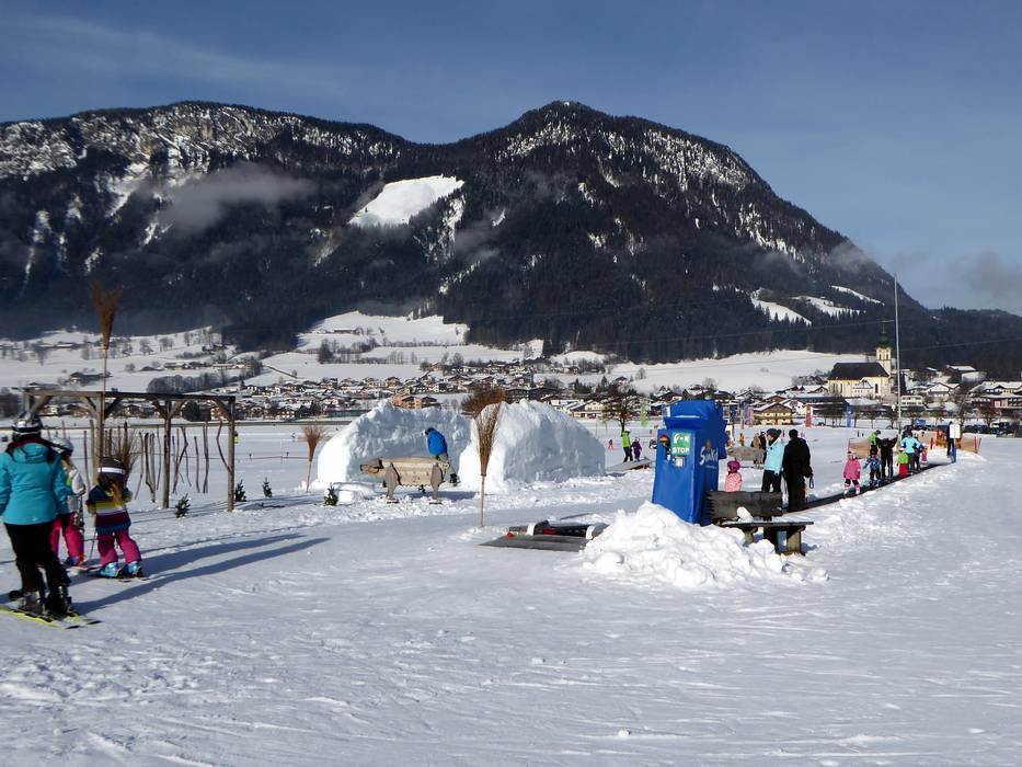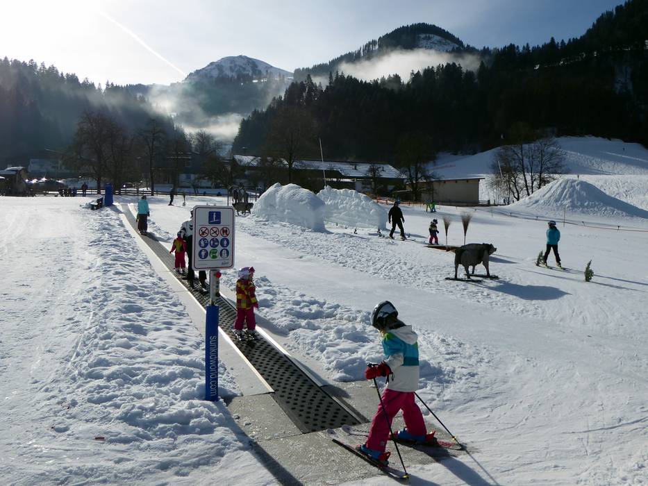 The Hexenwiese Söll is an adventure park for the little ones with a conveyor belt. It is located right at the valley station in Söll. For the first steps in the snow, the Hexenwiese is free of charge for young skiers and their parents. The adjacent rope lift is also free of charge.