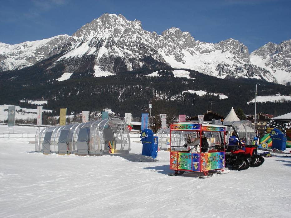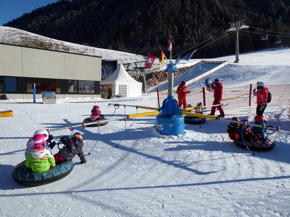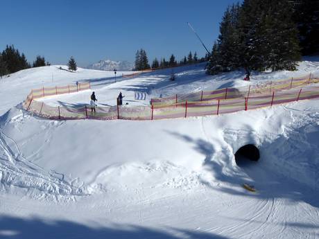 The Ellmauer Kinderland is a huge children's area with its own conveyor belts, carousel, and tubing run. The area stretches from Going to Ellmau and is also very suitable for beginners. Children learn to ski here at the Skischule Ellmau.