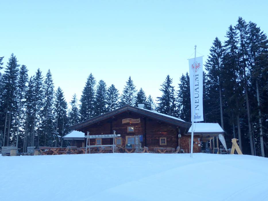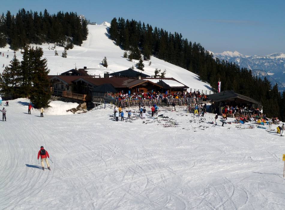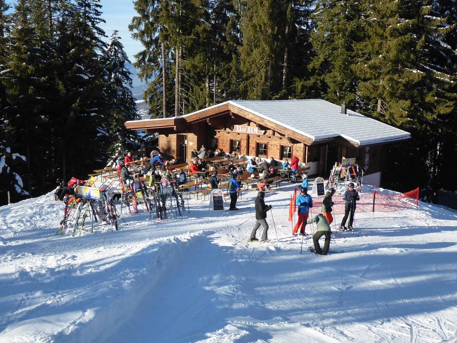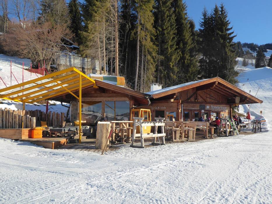 The rustic, family-friendly hut offers both table service and self-service. It is also open for night skiing. From the sun terrace, you have a great view of the slopes in Söll.