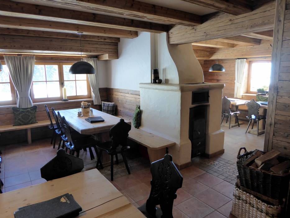 The serviced Stoagrub'n Hütte offers a cozy lounge with an open fireplace and a large sun terrace with a magnificent panorama. Tyrolean specialties are served.